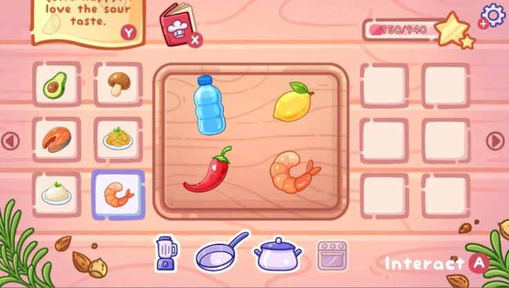 In the book, you can see different outlines of new recipes you have yet to discover. Then, you can go into the cooking area, select the ingredients you want, and decide how they are prepared (by selecting the blender, for example). They are then made and served. If you unlock something new, you get to see it and you gain more XP which lets you unlock more ingredients and ways to cook.