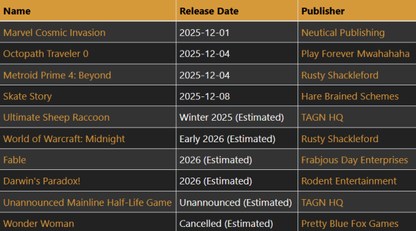 So there is a lesson about bidding on something that is close to release. But there are more titles to bid on still… I mean, it looks like there are 18 left on the list with solid 2025 release dates.